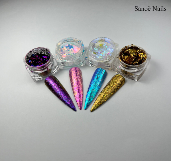 Met deze unieke glitter creéer je oogverblindende nagels. De glitter kan je aanbrengen in de plaglaag van gel, gellak of in de topcoat van acryl. Het verkregen resultaat is werkelijk oogverblindend!